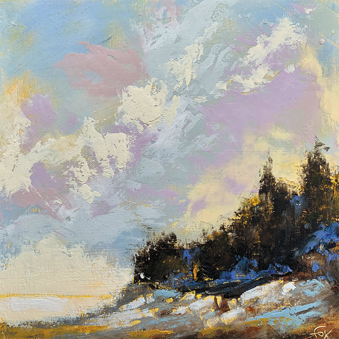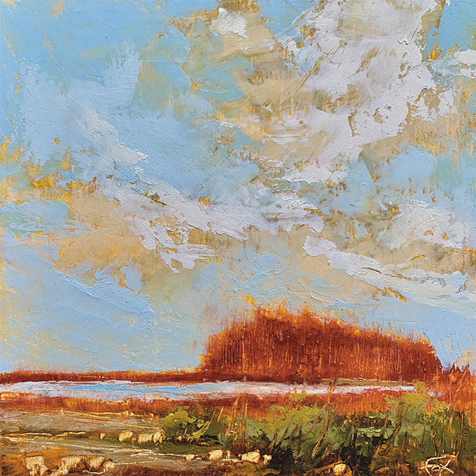 100/100 is a collection of Nova Scotia inspired landscape paintings originally created using oil and cold wax medium.