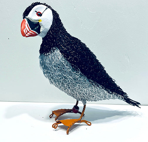 A background in painting and woodturning led Guy to create his distinctive folk-art bird sculptures. Capturing humour, character, mannerisms and movements, each sculpture has a life of it's own, tells a story, and marks a fleeting moment.
